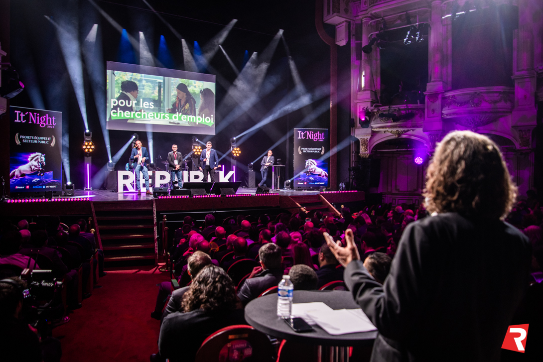IT NIGHT, la Nuit de l’entreprise numérique, initiée et organisée par RÉPUBLIK depuis 2012, est devenue « la soirée de l’année du monde de l’IT ». Plus de 1000 professionnels se déplacent chaque année dans un théâtre parisien, pour fêter les plus belles réalisations de l’écosystème IT dans différentes catégories.
